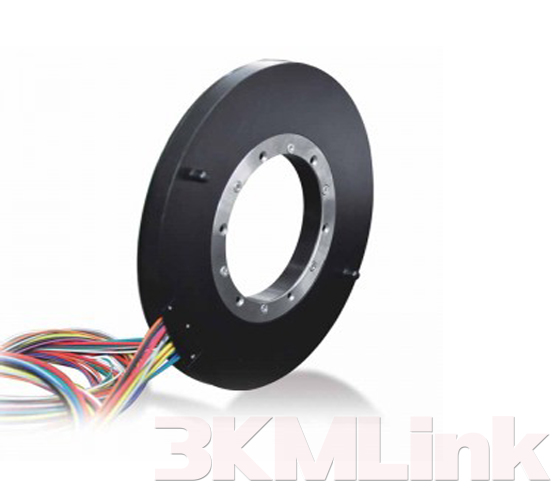 3KM T-series slip ring is designed with a through hole for shaft mounting, the through hole sizes are from 12.7mm to 124.6mm. it could be applied to transmit power, signals, RF, gas and fluid when the devices require 360° rotating.